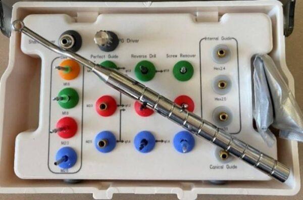 In the previous recovery attempt, the implant damage occurred was made with tooling from a USDent screw retrieval kit, and the procedure was attempted without microscope visualization and progressive verification. Reviewing these instruments on the web, they appear to be identical to the ones in the Neobiotech SR kit. As the initial drilling outcome was so poor, I was highly suspicious this tooling setup was not adaquate to produce a consistant and concentric drilling result into this M1.6 screw in this Astra 4.0Tx implant.