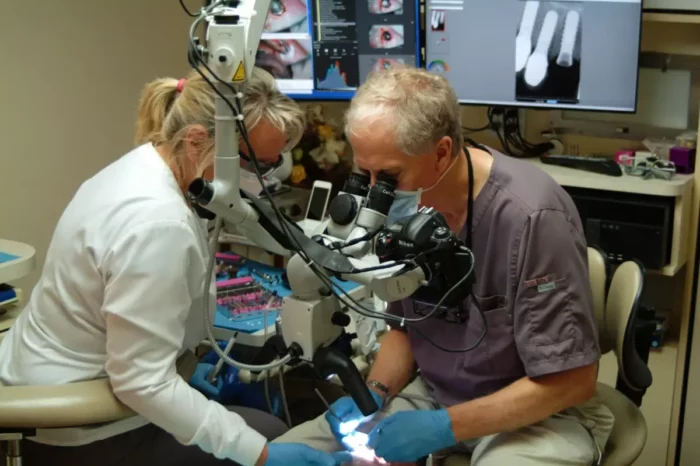 As Dr. Mastrovich analyzed, he recognized the first step would be better visualization of the inside of the implant as steps would be taken to remove the broken piece, with the goal of keeping the internal threads of the implant intact. Greater visualization than the 4x power dental loops used by most dentists, he reasoned, might be achieved by utilizing the 25x power clinical microscope used by the endodontists to have visualization inside the tooth root as they performed root canal treatment. His endodontist colleague allowed Dr. Mastrovich to use the 25x power clinical microscope in his office on the Fridays he wasn’t treating his own patients, and Dr. Mastrovich proved that level of magnification to be a crucial first step in the rescue process.